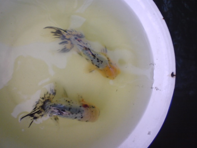 左がオランダの自作産卵藻で右が東錦のきんらん(市販)です。