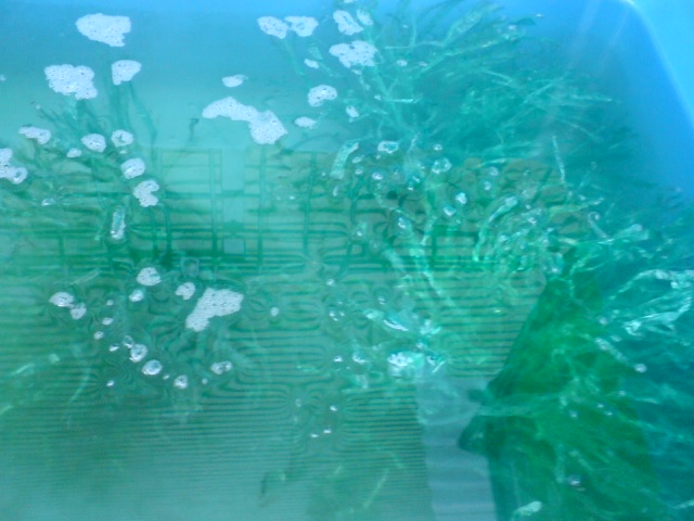 携帯カメラで撮ったので見づらいですがきんらんと自作産卵藻の